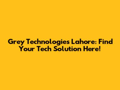 Grey Technologies Lahore: Find Your Tech Solution Here!