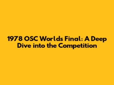 1978 OSC Worlds Final: A Deep Dive Into The Competition