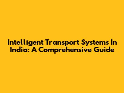 Intelligent Transport Systems In India: A Comprehensive Guide