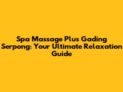 Spa Massage Plus Gading Serpong: Your Ultimate Relaxation Guide