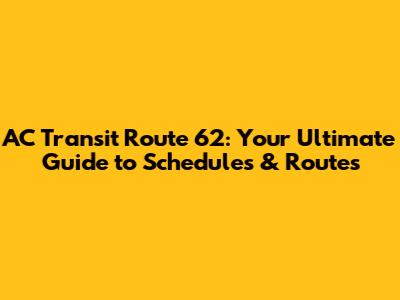 Hey there, public transit enthusiasts! Ever found yourself scratching your head, wondering about the AC Transit 62 bus schedule? Well, you're in the right place! We're diving deep into everything you need to know about navigating the AC Transit Route 62, from its detailed schedule and route information to tips and tricks for a smooth ride. Whether you're a daily commuter, a student, or just someone exploring the Bay Area, understanding the AC Transit 62 is key to getting where you need to go efficiently. This guide is your ultimate resource, breaking down the complexities and providing you with a clear, easy-to-understand overview. We'll cover everything, including the AC Transit Route 62 schedule, the stops, and even some insider tips to make your journey a breeze. Let’s get started and make your travels across the East Bay a whole lot easier! This article will also cover topics such as: AC Transit Route 62, AC Transit Route 62 schedule, AC Transit 62, ac transit schedule, and ac transit bus schedule.