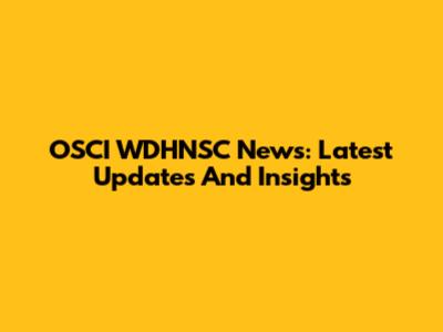 OSCI WDHNSC News: Latest Updates And Insights