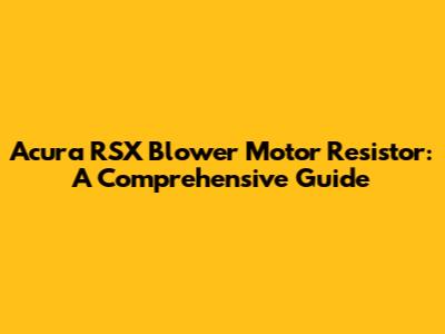 By following these steps, you should be able to replace your Acura RSX blower motor resistor successfully. Take your time, and don't hesitate to consult your repair manual or online resources if you get stuck.