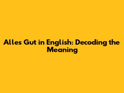 Hey guys! Ever heard someone casually toss out "Alles Gut" and wondered, "What does 'alles gut' mean in English?" Well, you're in the right place! We're about to dive deep into this super common German phrase, breaking down its meaning, how to use it, and why you'll hear it all over the place. Get ready to impress your friends (and maybe even a few Germans!) with your newfound knowledge. This phrase is a cornerstone of everyday German conversation, so understanding it will seriously level up your language game. Let's get started!
