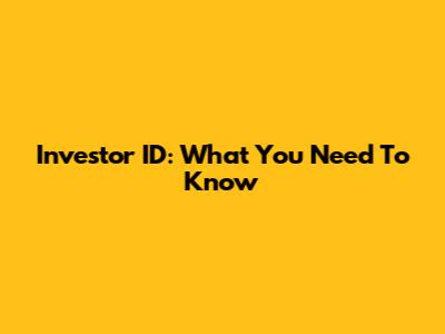 Investor ID: What You Need To Know