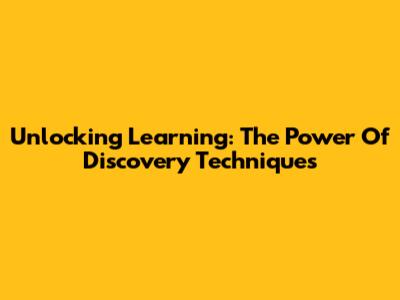 Unlocking Learning: The Power Of Discovery Techniques