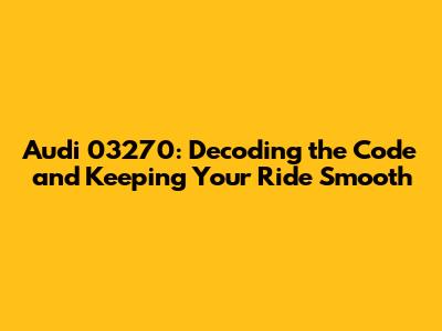 Understanding the Audi 03270 Error Code: What Does It Mean?