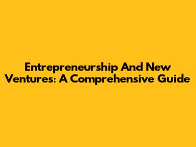Entrepreneurship And New Ventures: A Comprehensive Guide