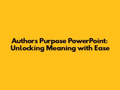 Hey guys! Ever wondered why authors write what they do? It's not just about telling a story or sharing facts; there's usually a deeper purpose behind their words. Understanding an author's purpose is like having a secret decoder ring for books, articles, and even those social media posts. In this Author's Purpose PowerPoint guide, we're going to dive deep into how to crack that code and make reading way more insightful. We'll explore the main reasons authors put pen to paper (or fingers to keyboard!), helping you become a super-sleuth reader. Think of it as leveling up your comprehension skills so you can really get what the author is trying to convey. We'll break down the 'why' behind the 'what', making it super clear and easy to grasp, even for beginners. Get ready to boost your reading game!