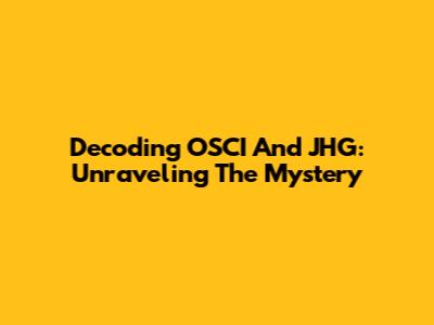 Decoding OSCI And JHG: Unraveling The Mystery
