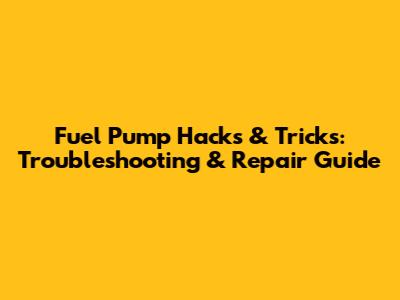 Fuel Pump Hacks & Tricks: Troubleshooting & Repair Guide
