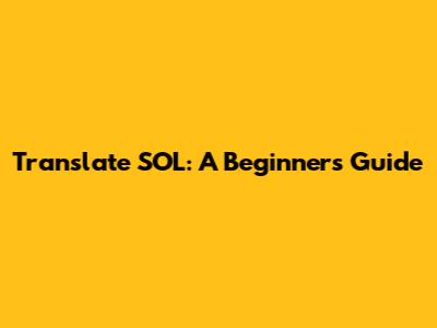 Translate SOL: A Beginner's Guide