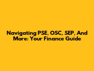 Navigating PSE, OSC, SEP, And More: Your Finance Guide