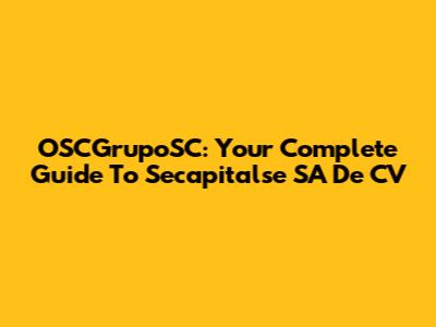 OSCGrupoSC: Your Complete Guide To Secapitalse SA De CV