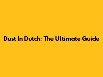 Dust In Dutch: The Ultimate Guide