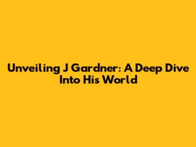 Unveiling J Gardner: A Deep Dive Into His World