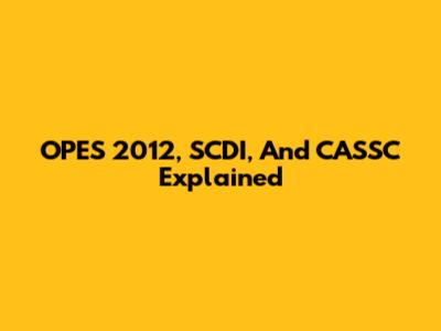 OPES 2012, SCDI, And CASSC Explained