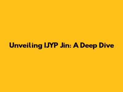 Unveiling IJYP Jin: A Deep Dive