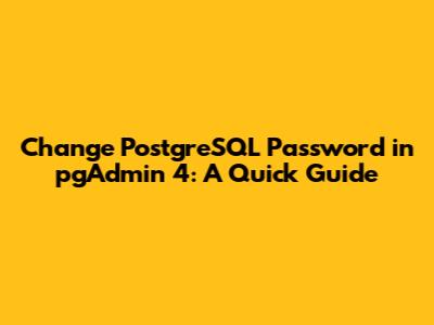 Moreover, password policies within organizations often require periodic password changes. This is a standard practice to mitigate the risk of password compromise. If your company mandates password rotations, knowing how to quickly and efficiently change your PostgreSQL password through pgAdmin 4 is essential. It ensures you remain compliant with security protocols and keep your data safe.