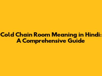 Cold Chain Room Meaning in Hindi: Deep Dive into Terminology