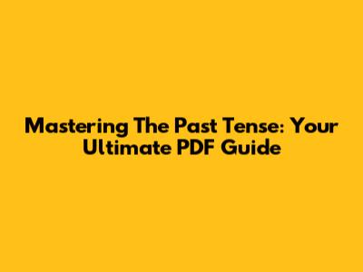 Mastering The Past Tense: Your Ultimate PDF Guide