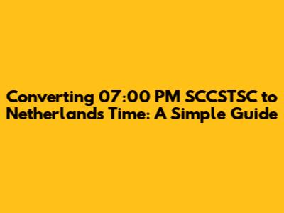 Hey there, time travelers! Ever found yourself scratching your head trying to figure out what time it is somewhere else? I know I have! Especially when coordinating calls or events across different time zones. So, let's dive into the nitty-gritty of converting 07:00 PM SCCSTSC to Netherlands time. Don't worry, it's not rocket science, and I'll walk you through it step-by-step. We'll break down the process, consider daylight saving time, and maybe even throw in a few fun facts along the way. Get ready to become a time zone conversion ninja! This guide is designed to be super friendly, so whether you're a seasoned traveler or just trying to connect with a friend in the Netherlands, you'll be able to nail this. Let's get started, guys!