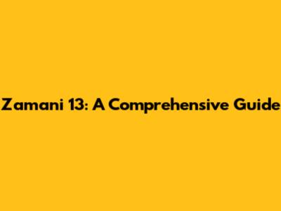Zamani 13: A Comprehensive Guide
