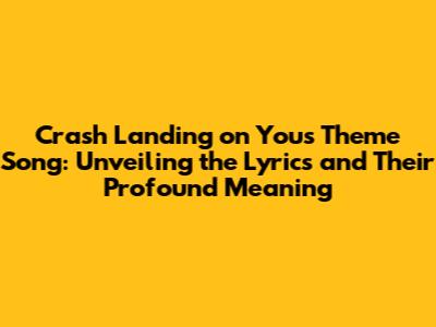 Crash Landing On You's Theme Song: Lyrics & Meaning