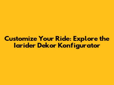 Hey there, gearheads and style enthusiasts! Ever wanted to truly make your ride a reflection of your personality? Well, the Iarider Dekor Konfigurator is here to make your customization dreams a reality. This tool is a game-changer for anyone looking to personalize their vehicle, allowing you to explore a vast array of options and visualize the final product before committing. In this article, we'll dive deep into what makes the Iarider Dekor Konfigurator so special, how you can use it to create your dream car, and why it's a must-try for anyone who loves vehicles. So, buckle up, because we're about to take a joyride through the world of automotive customization!
