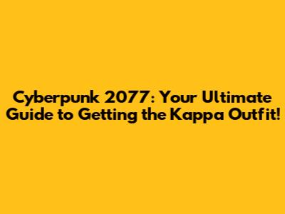 So, buckle up, grab your favorite cyberware, and let's get you kitted out in style. This isn't just about looking good, it's about making a statement. The Kappa outfit is more than just clothes; it's a badge of honor, a symbol of your dedication to looking fresh while you take down corps and navigate the treacherous world of Night City. We will explore every detail and guide you on a comprehensive journey to acquire the Kappa outfit. Get ready to turn heads and dominate the digital fashion scene of Night City! Let’s get you from zero to hero, or at least from zero to stylishly equipped hero.