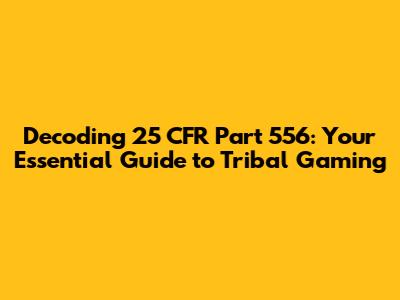 Hey everyone! Ever heard of 25 CFR Part 556? If you're involved in tribal gaming, or even just curious about how it works, this is a super important piece of the puzzle. Think of it as the rulebook, the bible, the go-to guide for how gaming operations on tribal lands should be run. This is a deep dive into the regulations. Let’s break it down and make it easy to understand. We will use the following keywords: 25 CFR Part 556, Gaming Regulations, and Tribal Gaming to ensure you understand. Let's get started, shall we?