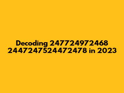 Decoding 247724972468 2447247524472478 2023 is a challenging task that requires a systematic approach. By breaking down the string into its components, analyzing the frequency of digits, and considering various possible interpretations, we can start to unravel its mystery. The presence of "2023" provides a crucial temporal context, suggesting that the string is related to events, data, or systems from that year. Whether it's a date, code, identifier, or something else entirely, further investigation and contextual information are needed to fully decipher its meaning. Keep exploring, keep questioning, and you might just crack the code!