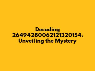 \nAlright guys, let's dive headfirst into the enigma that is 26494280062121320154. What is it? A serial number? A secret code? A random string of numbers that somehow ended up in our laps? Well, that’s exactly what we're going to figure out. Strings of numbers like 26494280062121320154 often pop up in various contexts, from identifying products and transactions to serving as unique identifiers in databases. The challenge lies in deciphering the origin and purpose behind this specific sequence. To truly understand 26494280062121320154, we need to put on our detective hats and explore all the possibilities. Could it be related to a financial transaction, like a reference number for a bank transfer or a credit card authorization? Perhaps it's a product identifier, similar to a UPC or EAN code, used to track inventory and sales. Or, maybe it's an internal identifier within a company's database, linking to a specific record or entry. The world of data is vast and varied, and number sequences like 26494280062121320154 play a crucial role in organizing and managing information. Think of it like this: every item, every transaction, every piece of data needs a unique fingerprint to distinguish it from everything else. This is where these seemingly random strings of numbers come into play, acting as identifiers that help us navigate the digital landscape. So, let's get started and unravel the mystery behind 26494280062121320154.