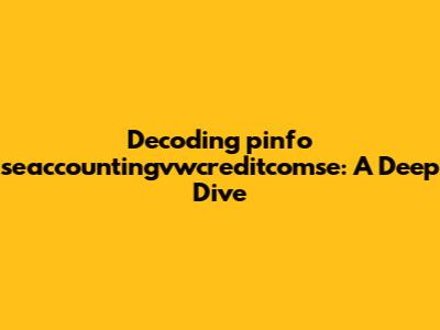 Let's break down the term into smaller, more digestible parts. First, we have "pinfo". This short form is frequently used to refer to "program information" or "personal information", depending on the context. In the case of accounting and credit services, it likely refers to specific program data used within Volkswagen Credit's systems. This could include a wide array of information. It could involve details about credit agreements, customer data, and financial transactions. Then, we have "seaccounting". The "se" part usually denotes "systems and equipment," which is then followed by "accounting." This points to the system specifically used for accounting purposes. This part is a key component of the overall operation. Next up is "vwcredit", which, without a doubt, refers to Volkswagen Credit. This tells you exactly which entity is associated with this particular part of the system. This clarifies which company is associated with it. Finally, we have "comse". This suggests the system is related to services, specifically within Volkswagen Credit's systems. These different components all work together to form a comprehensive system.