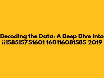 Hey guys, let's embark on a fascinating journey to decode the enigma surrounding ii158515751601 160116081585 2019. Sounds a bit like a secret code, right? Well, that's exactly what we're going to tackle! This article is designed to be your friendly guide, offering a clear and engaging exploration of what this peculiar string of numbers and letters might represent. We'll delve into potential interpretations, explore different contexts, and maybe even uncover some hidden meanings. So, buckle up, grab your detective hats, and let's get started. Our goal is to make this complex subject accessible and enjoyable, transforming what might seem like a jumble of characters into a compelling story. We are going to explore this data to understand its potential significance. This exploration is not just about deciphering a code; it's about uncovering the story behind the data, understanding its context, and appreciating its potential value. We will explore various potential interpretations, including potential dates, financial codes, or even scientific identifiers. This analysis will require a combination of detective work and contextual understanding. So, get ready to dive in, because the adventure begins now!