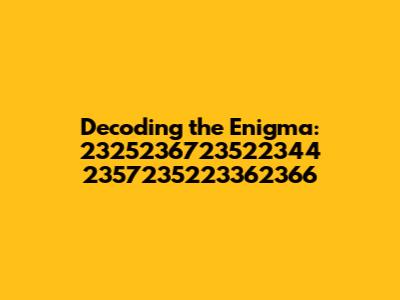 Alright guys, let's dive deep into something that looks like a random sequence of numbers but could potentially hold a fascinating secret. We're talking about 2325236723522344 2357235223362366. At first glance, it might seem like a jumble, but let's break it down and see if we can make heads or tails of it. Perhaps it’s a code, a reference number, or maybe even a unique identifier for something important. Whatever it is, let's put on our detective hats and get to work!