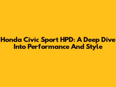 Honda Civic Sport HPD: A Deep Dive Into Performance And Style