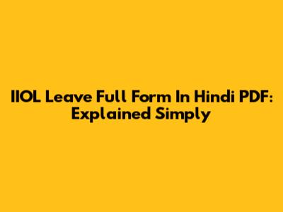 IIOL Leave Full Form In Hindi PDF: Explained Simply