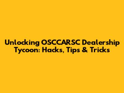 Unlocking OSCCARSC Dealership Tycoon: Hacks, Tips & Tricks
