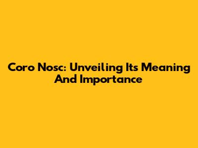 Coro Nosc: Unveiling Its Meaning And Importance