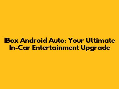 IBox Android Auto: Your Ultimate In-Car Entertainment Upgrade