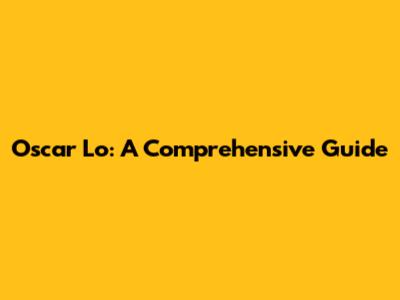 Oscar Lo: A Comprehensive Guide