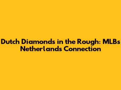 The Future of Dutch Baseball in MLB