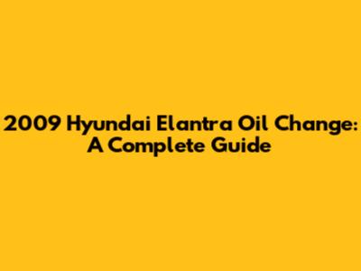 2009 Hyundai Elantra Oil Change: A Complete Guide