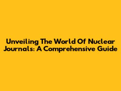 Unveiling The World Of Nuclear Journals: A Comprehensive Guide