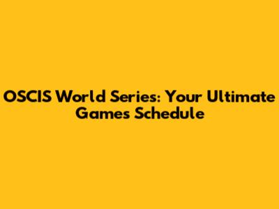 OSCIS World Series: Your Ultimate Games Schedule