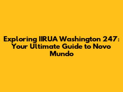 Alright, let’s get down to the nitty-gritty and focus specifically on IIRUA Washington 247 in Novo Mundo. We’re going to explore what makes this particular location unique, the services it offers, and how it differs from similar organizations. This will give you a comprehensive understanding of its role in the community and the impact it has on the lives of the residents.