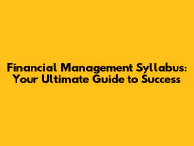 Key Topics Covered in a Financial Management Syllabus