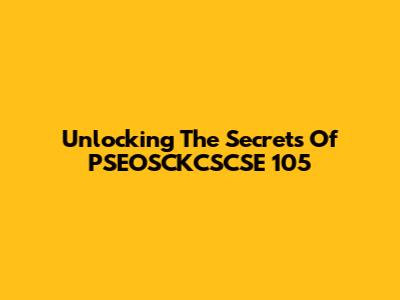 Unlocking The Secrets Of PSEOSCKCSCSE 105