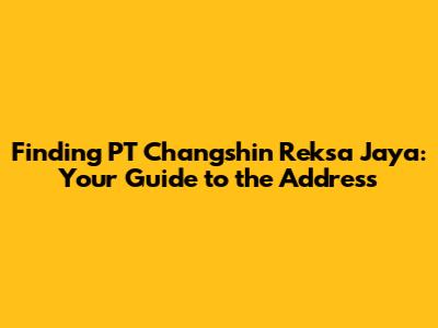 How to Find PT Changshin Reksa Jaya's Address: Your Step-by-Step Guide